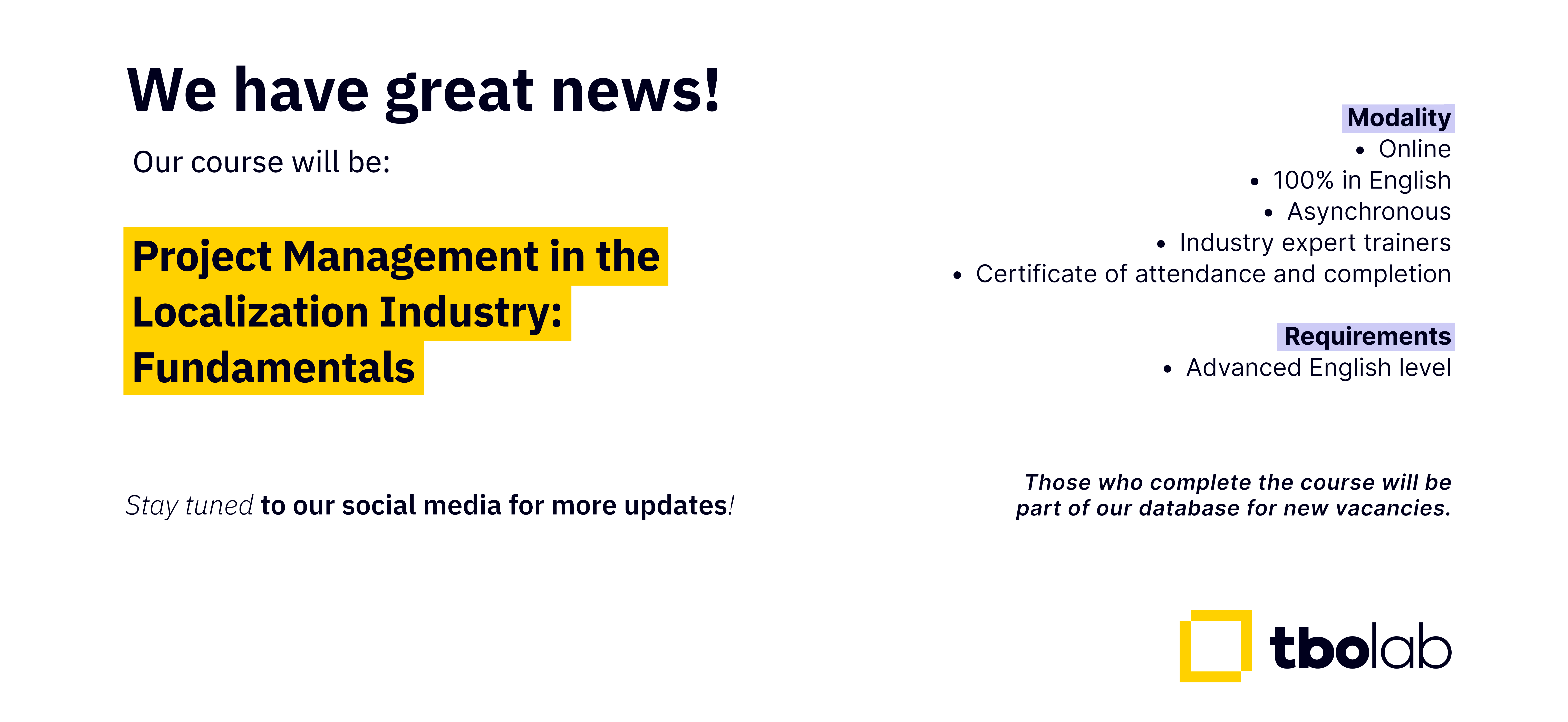 Our online courses are self-paced. Once you buy them, they are available for 30 or 60 days in a row (depending on the course). Registration is always open for most of the courses and some of them, like Workshops or Certification Exams, are open 2 or 3 times a year.